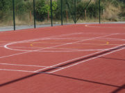 Изградена е нова спортна площадка на мястото на съществуващата. Изравнени са неравностите и са запълнени пукнатините в съществуващата асфалтова настилка на игрището. Съществуващите наклони на терена са запазени с цел отводняване на площадката. Положена е спортна каучукова настилка с дебелина 10 мм. Новото игрище е оборудвано с две метални врати за футбол и с кошове за баскетбол. Въведена е и нова дисциплина – бадминтон. До игрището има и зона за бягане. Изградена е метална ограда с височина 6 метра по контура на игрището с два входа в оградата. Монтираните врати са двукрили, като при отваряне на едното крило се осигурява отвор от 90 см, с което са изпълнени изискванията за достъпна среда за хора с увреждания и евакуация на хора.