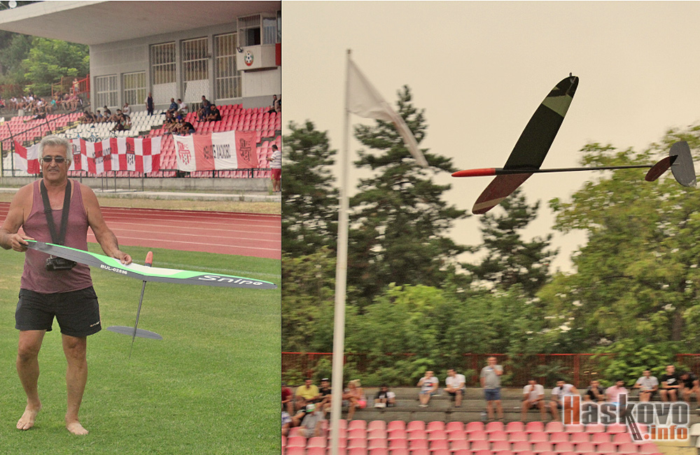 Авиомоделистът Димитър Филев пусна над стадион „Хасково“ радиоуправляем самолет, който беше атракцията за публиката на полувремето на мача между „Хасково“ и „Марица“ (Пловдив).