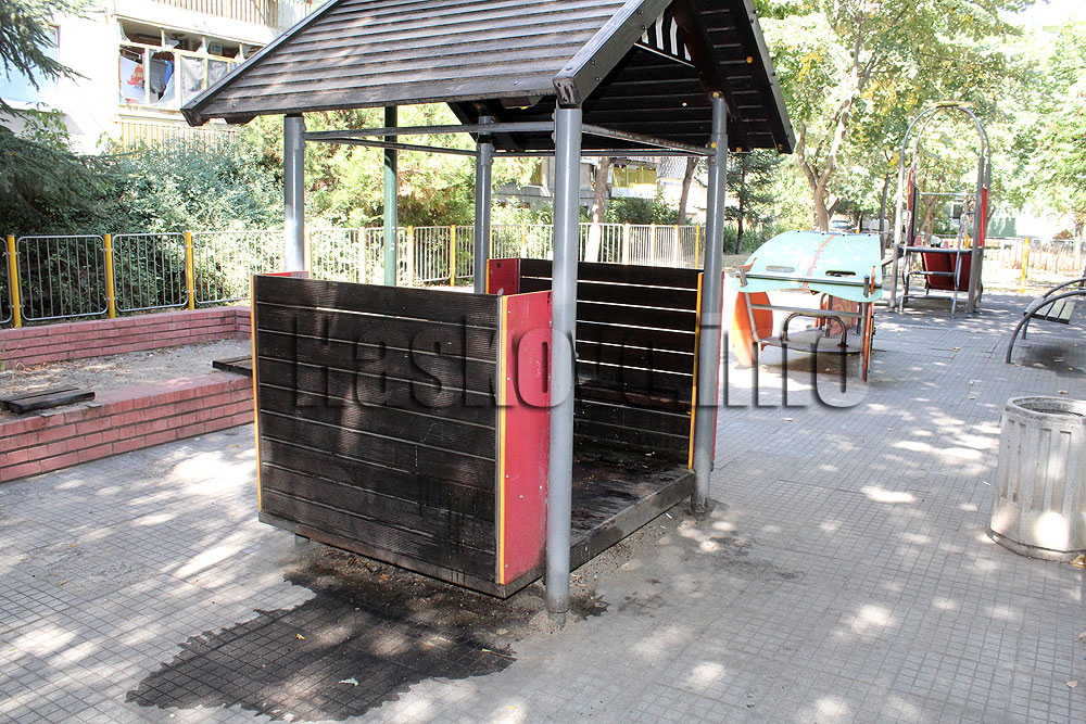 Детска площадка в Хасково осъмна залята с мазнина. За това сигнализираха читатели на Haskovo.info, които не могат да ползват съоръжението заедно с децата си.