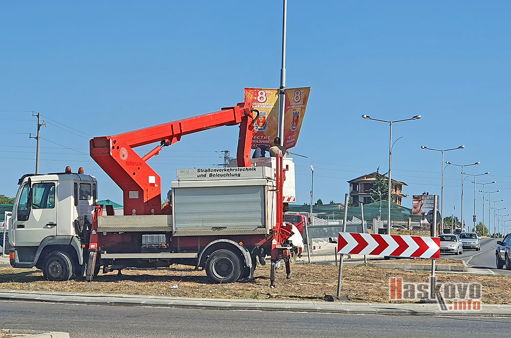 Винили и знамена за празника на Хасково – 8 септември се поставят по булевард „Освобождение“. Знамената вече са вдигнати по булевард „Раковски“.