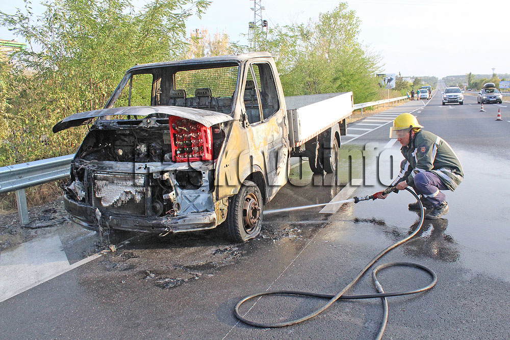 Товарен автомобил се запали на пътя между Хасково и Димитровград.