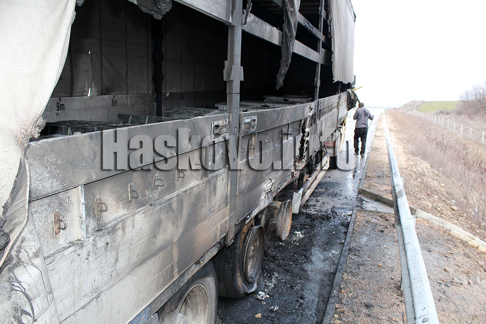 Малко след полунощ на магистрала „Марица“ около отбивката за Хасково се е запалил сръбски товарен автомобил с ремарке. Пламъците са тръгнали от двигателя. Влекачът и ремаркето са изгорели, а заради пожара движението е било отбивано до рано тази сутрин.