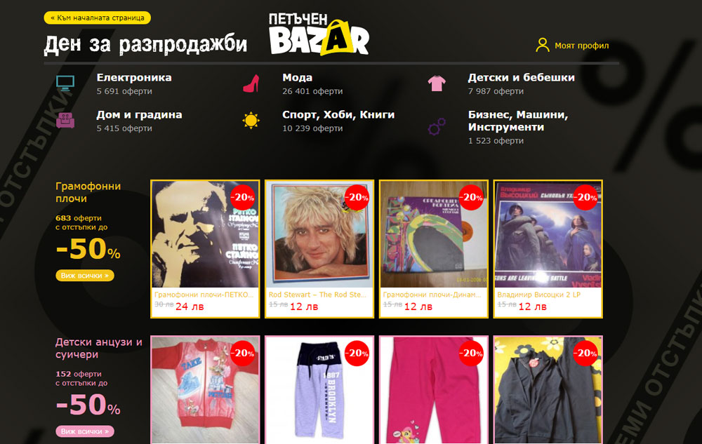 Черният Базар е любимо събитие на потребителите на уебсайта. Всеки месец те имат шанс да избират продукти в множество категории с намаления между 20 и 70%. Освен това отстъпките са гарантирани, тъй като, за участие на Черния Базар, търговците трябва да покрият определени критерии. Основното е цената на продукта да не е променяна последните 30 дни, както и стойността без намаление да е адекватна (нито твърде ниска, нито изкуствено завишена) за този тип стока.