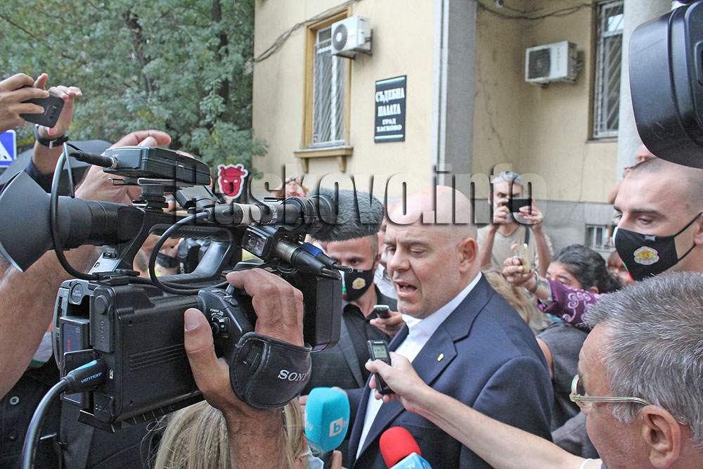 Гешев пристигна в Хасково в ранния следобед. Мълвата за посещението на главния прокурор бързо се разнесе из града и участници в антиправителствения протест се събраха пред съда.