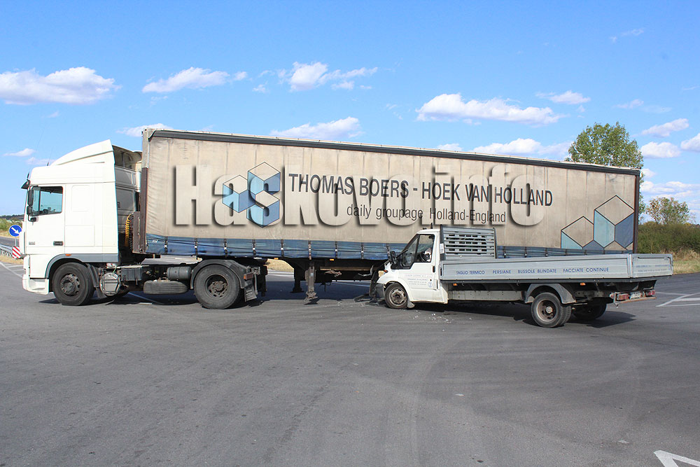 Инцидентът стана в платното за Димитровград в района на Бирената фабрика. Тир е излязъл от разклона за фабриката и в него се е ударило камиончето. При приозшествието е пострадал возещ се във Форда мъж, който е откаран за преглед в Спешно отделение на МБАЛ – Хасково.