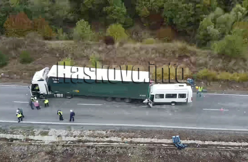 Предстои шофьорът на украинския тир да бъде задържан и да се изясни причината за жестоката катастрофа. На пътя има 20 – 30 метра спирачен път на микробуса.