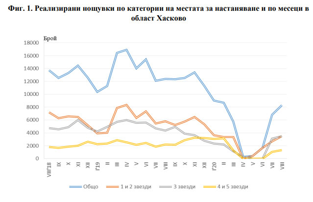 29 са местата за настаняване с над 10 легла – хотели, мотели, хижи и други, през август в Хасковска област при продължаващата епидемична обстановка заради коронавируса, съобщават от Териториално статистическо бюро – юг, отдел „Статистически изследвания – Хасково“ при Националния статистически институт.