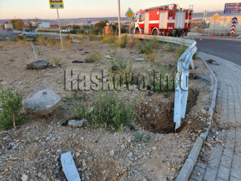 Лек автомобил е преминал през кръговото, като по първоначална информация се е преобърнал. Предполага се, че се е движил с висока скорост.