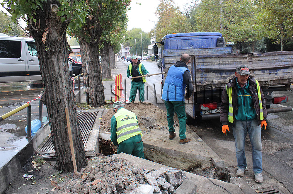 Работници от „Екопрогрес“ започнаха тази сутрин изграждането на отводнителен канал на булевард „България“ до зеленчуковия пазар.