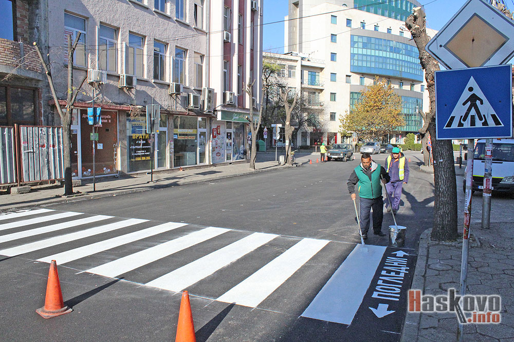 Започна полагането на маркировката по новоасфалтирания участък на булевард „Освобождение“ в Хасково. Очаква се работата да приключи след обяд и движението да бъде окончателно възстановено.