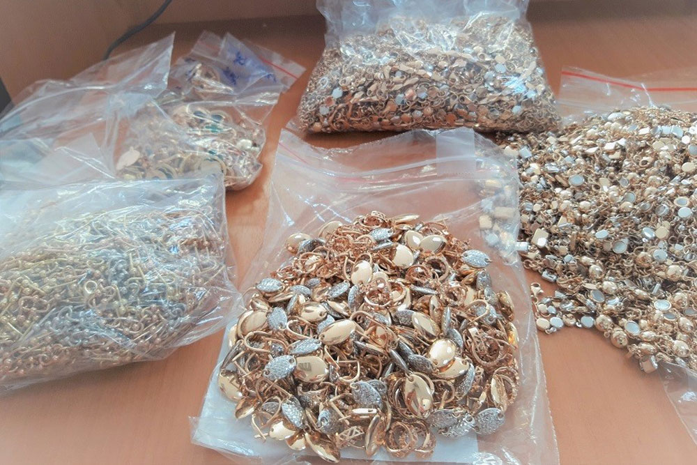 У едната жена са намерени три плика, съдържащи 358 гривни и 99 чифта обици с общо тегло 1 661.60 грама. Четири плика с 230 гривни, 40 колиета и 50 чифта обици с тегло 1 078.50 грама са открити при личния преглед на втората жена, а у третата е установено, че укритите бижутерийни изделия са 621.10 грама.