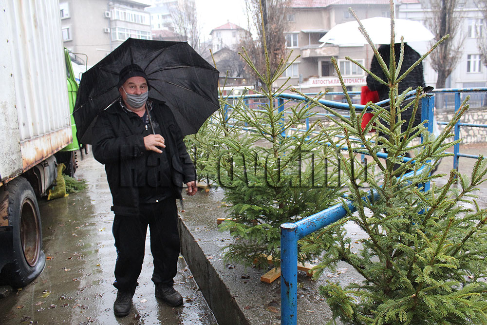 Търговецът е пристигнал вчера и вече има първите клиенти. Въпреки че има още време до празниците, хората започват да купуват.