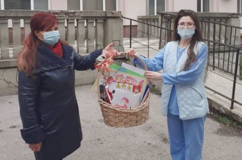 Подготвени в кошница посланията от децата бяха предадени от тяхната класна ръководителка Петя Йорданова на главната сестра на общинската болница Златка Генчева. Идеята да подарят собственоръчно изработените си сувенири на лекарите дошла от самите деца.