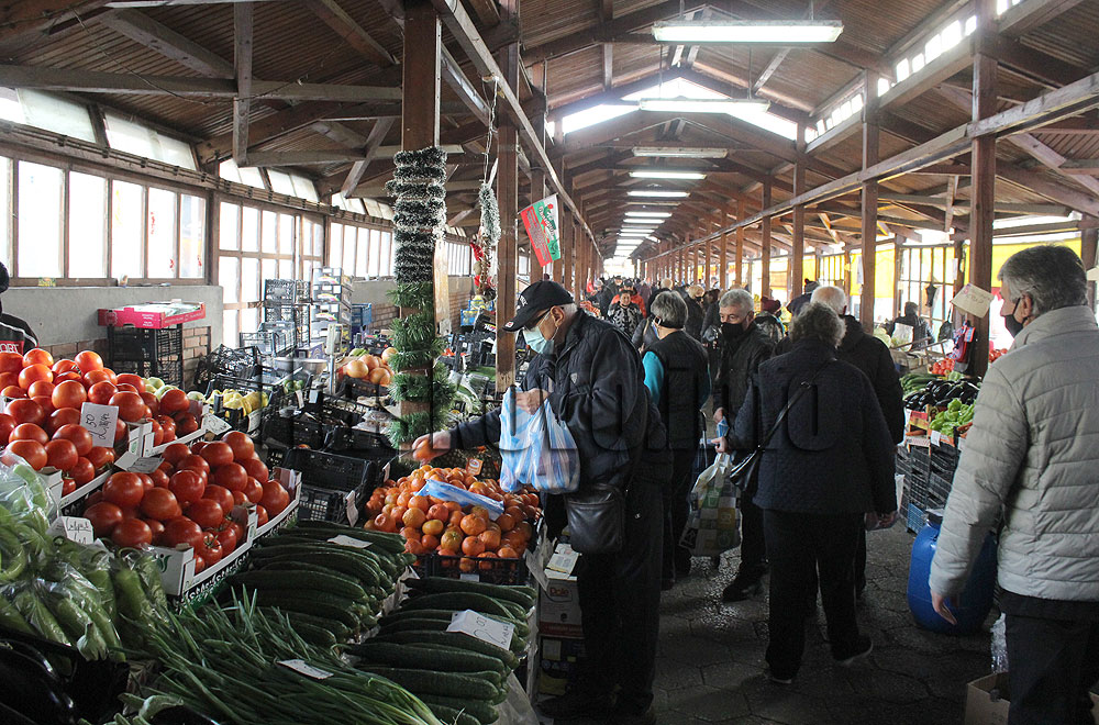 Много хасковлии посетиха преди обяд зеленчуковия пазар, купувайки продукти за трапезата на Бъдни вечер. Повечето от тях бяха с предпазни маски.