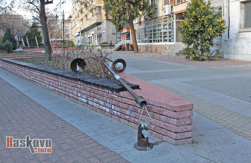 Вандали са съборили една от лампите в центъра на Хасково.