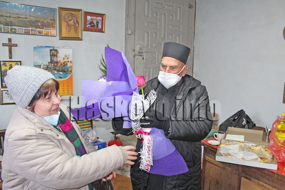 На празничната служба в църквата „Успение на Св. Богородица“ беше и почетният гражданин на Хасково отец Антоний Енев. Въпреки че през септември миналата година той се оттегли след 71 г. служба, по традиция обичаният свещеник отпразнува имения си ден в храма и получи букети с цветя.