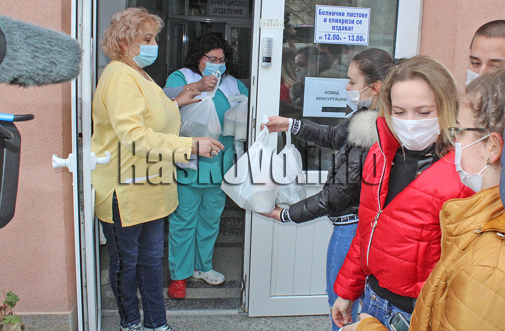 От Второ вътрешно отделение също благодариха за храната и подариха на учениците торбичка със сладка почерпка. Обяд беше занесен и във физиотерапията, където също има сектор за болни с коронавирус.
