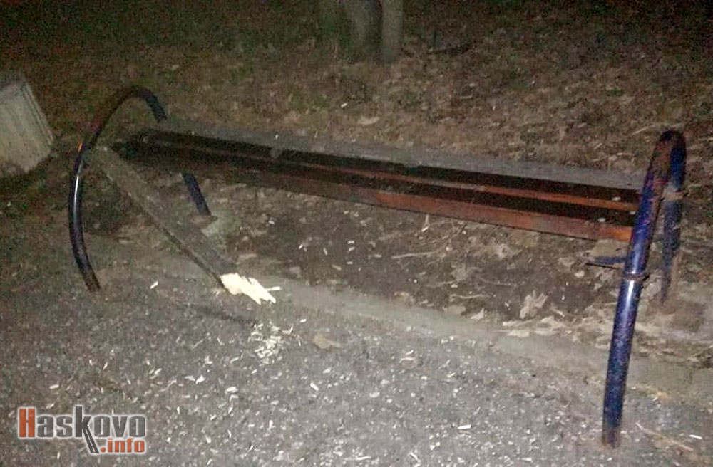 Вандали са счупили една от пейките в хасковския парк "Кенана". Снимка: Дениз Карекинян