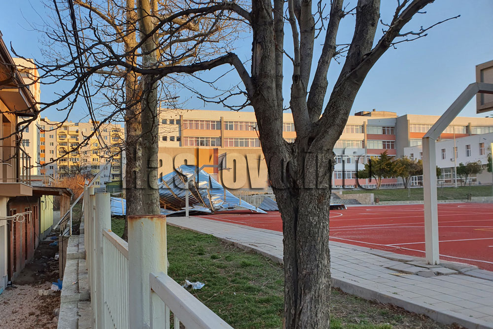 Силният вятър събори метален покрив в двора на хасковското училище „Шандор Петьофи“.