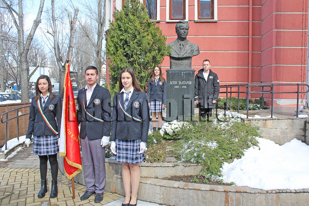 След това гимназисти положиха цветя пред бюста на Асен Златаров пред театър „Иван Димов“. Повече за Асен Златаров прочетете Тук.