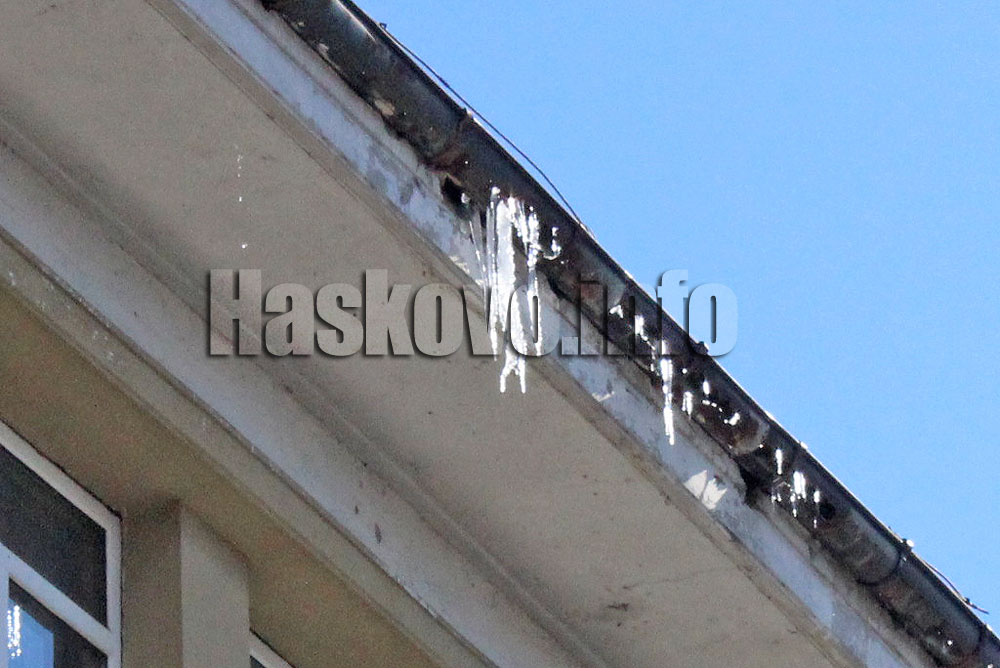 Със снеготопенето по стрехите на сгради в Хасково се образуваха опасни ледени висулки.