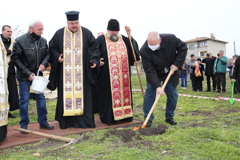 Преди това беше отслужена литургия в центъра на селото. След това архимандрит Богослов – протосингел на Старозагорската епархия даде началото на първата копка и благослови начинанието, като пожела здраве и добруване на хората. Отец Караджонов заедно с кмета на селото Александър Карачобанов положиха основополагащ камък на бъдещия православен храм.