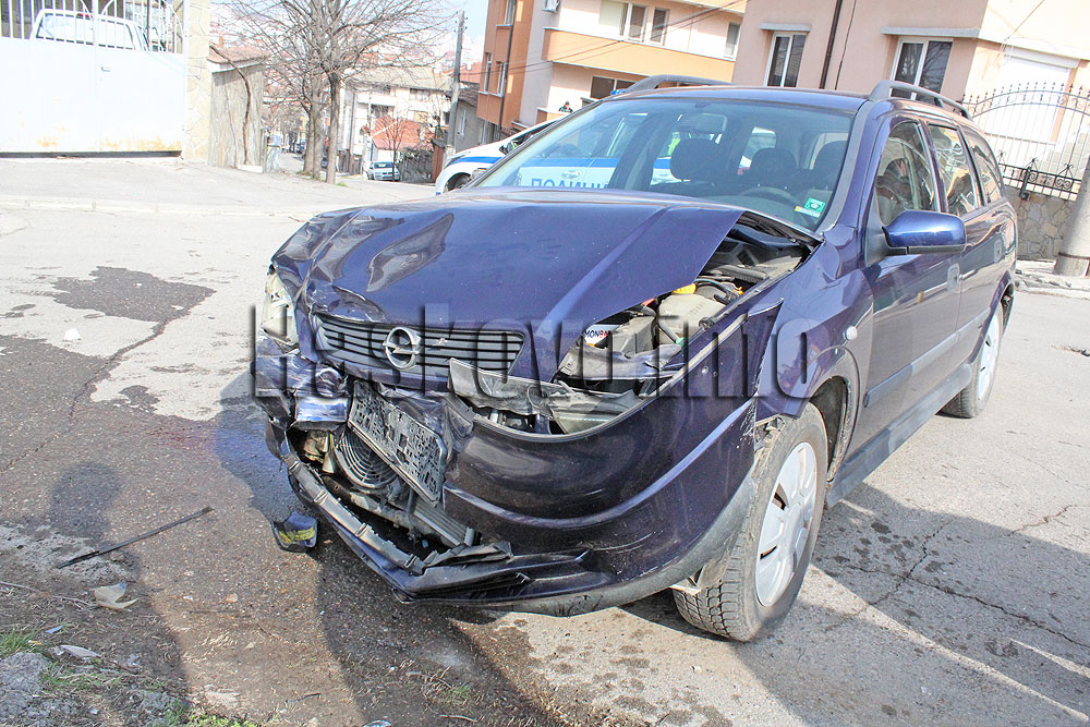 Инцидентът стана по обяд на кръстовището между улиците „Крали Марко“ и „Червена стена“. Удариха се Опел и Фолксваген, като причината за произшествието е отнето предимство. След сблъсъка Фолксвагенът се е забил в уличен стълб.