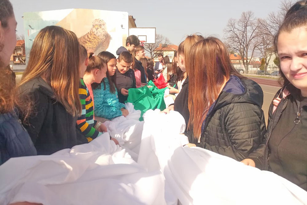 16-метрово знаме разпънаха в навечерието на Трети март близо 40 ученици от свиленградското СУ „Д-р Петър Берон“.