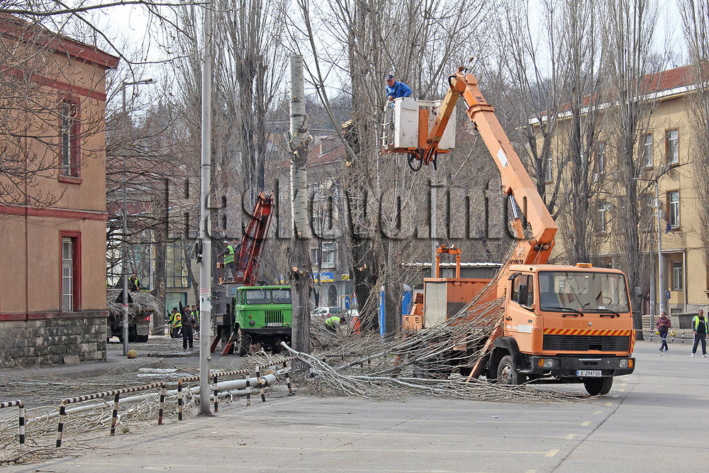 Участък от хасковския булевард „България“ беше затворен тази сутрин заради резитбата на опасните тополи.