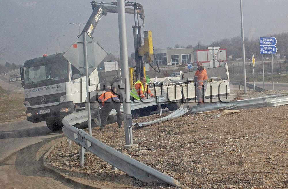 Ремонтира се мантинелата на кръговото между Хасково и Димитровград. Тя беше смачкана при няколко катастрофи.