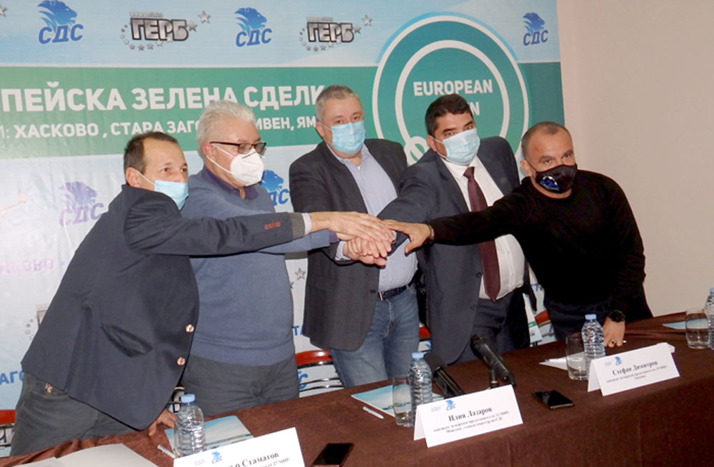 Меморандум за съвместни политически действия по присъединяването на областите Хасково, Стара Загора, Сливен и Ямбол към обхвата на Механизма за справедлив преход подписаха главният секретар на СДС Илия Лазаров и кандидатите за народни представители в листата на коалиция ГЕРБ – СДС Стефан Димитров (за област Хасково), Димитър Стаматов (за област Стара Загора), Пламен Крумов (за област Сливен) и Павел Додов (за област Ямбол).