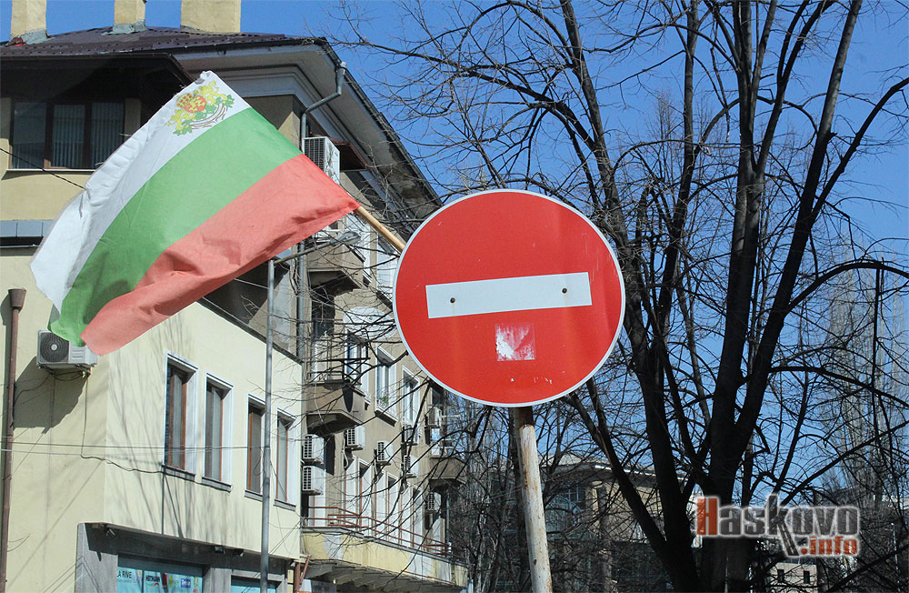 Трибагреник се развя на пътен знак. Той е поставен на табела, забраняваща влизането в отсечка от ул. „Арда“ до пощата в Хасково.