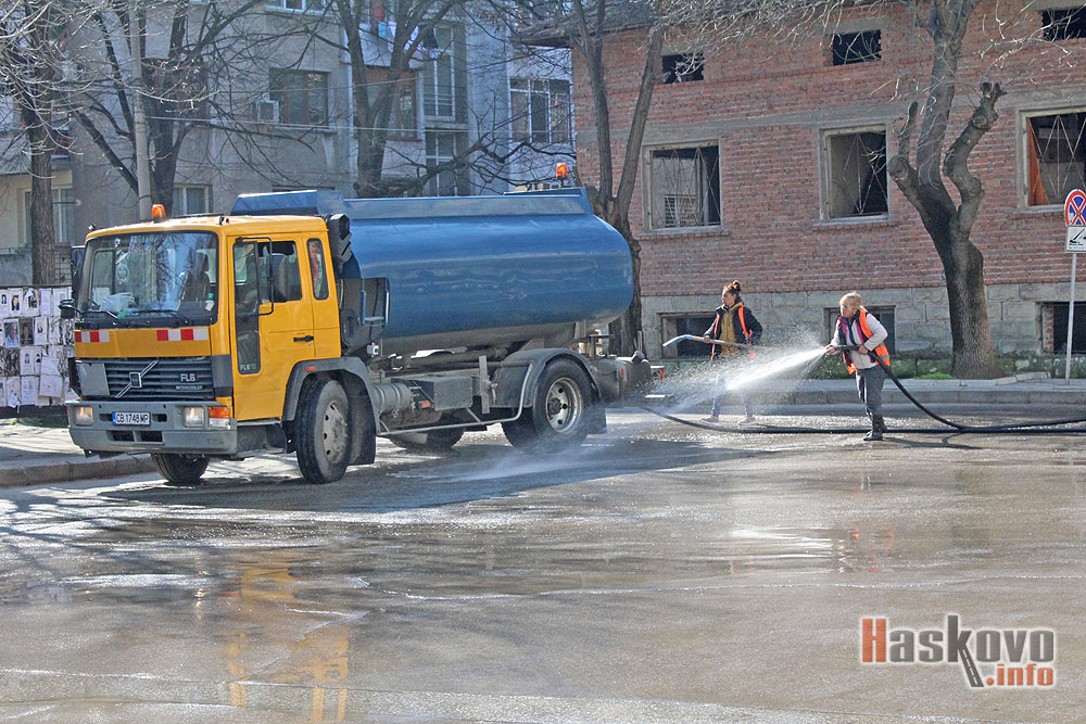 След затоплянето на времето от фирмата по чистота мият хасковската улица "Добруджа".