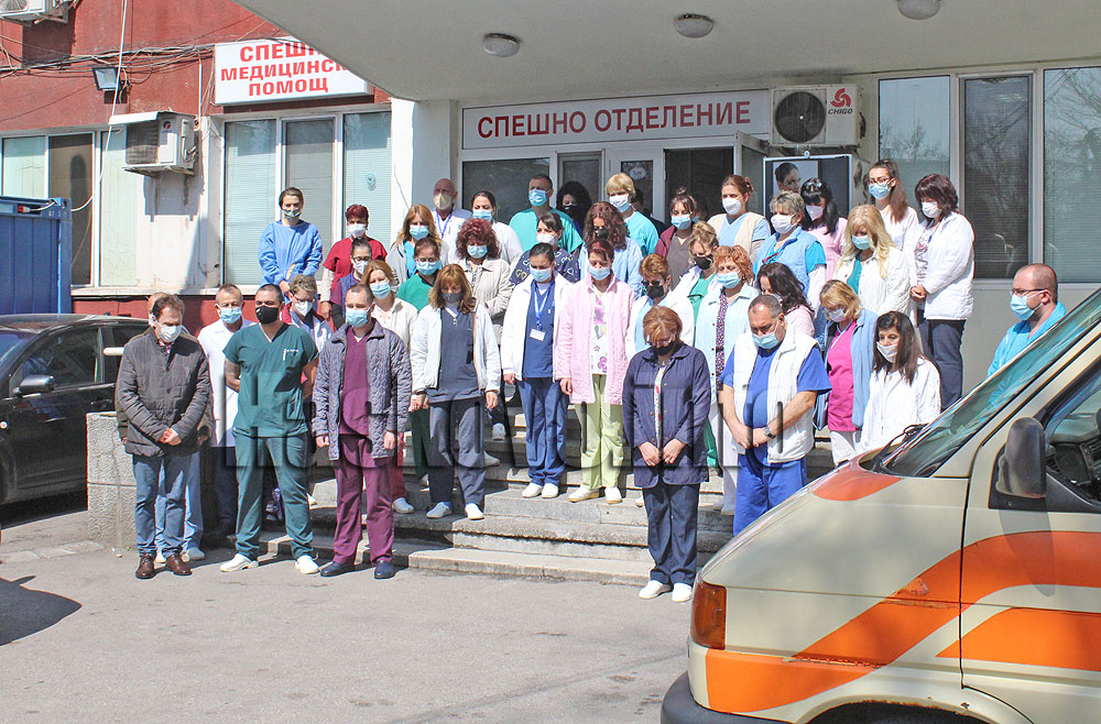 На професионалния си празник медиците се събраха пред болницата и с минута мълчание и включени сирени на линейки почетоха паметта на своите колеги, загубили битката с COVID-19. Сред тях са д-р Надежда Стайкова и д-р Живко Атанасов.