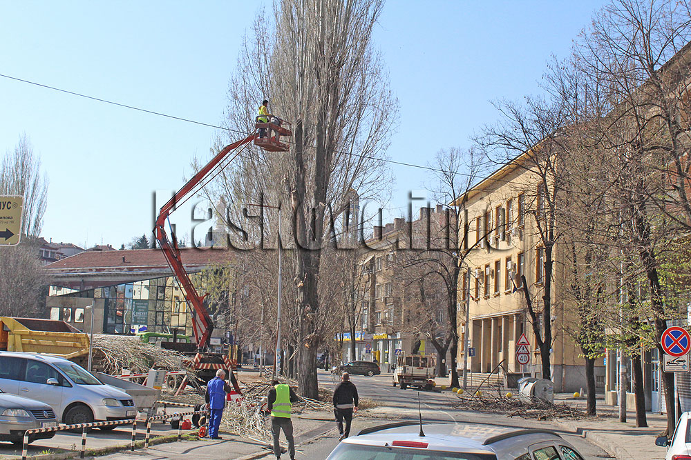 Отсечка от хасковския булевард „България“ беше затворена тази сутрин за сеч на опасните тополи.