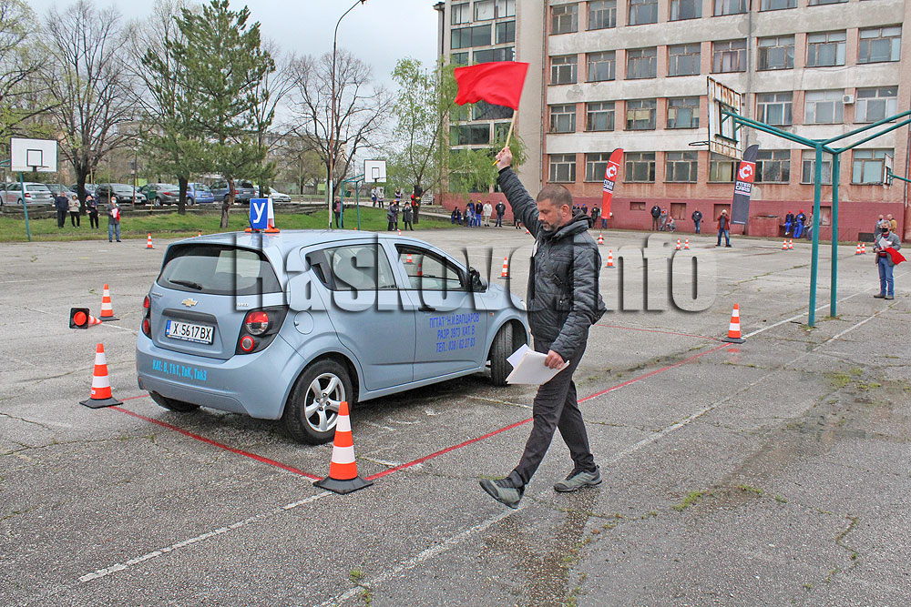 В надпреварата участват отбор на училището домакин и 7 тима от страната. Хасковският отбор е с ръководител Атанас Атанасов и състезателите Йордан Пейчев, Емил Иванов и Семих Хасан. Всички днес решаваха тест, след което Семих участва в състезанието по майсторско шофиране с Шевролета на гимназията. Младите водачи преминаваха през тунел и змейка на преден и заден ход, гарираха.