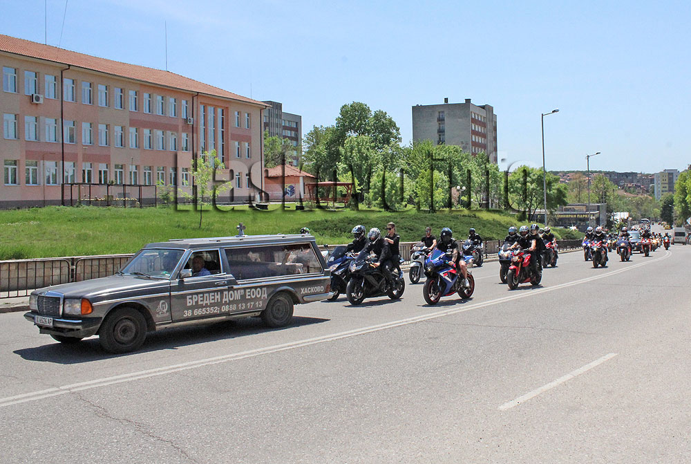 Мотористи от много градове в Южна България се събраха днес в Хасково, за да изпратят 25-годишния Даниел Делчев, който загина в тежка катастрофа на 1 май.