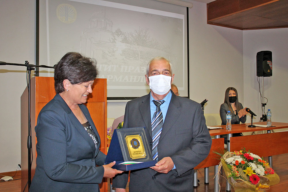 Празничната сесия завърши с изпълнение на „Харманлийските славеи“, на които ръководител е новият почетен гражданин на Харманли.
