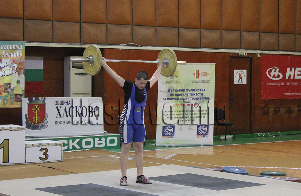 Възпитаникът на треньора Живко Архондев спечели първи медал за клуба при кадетите до 15 г. в категория 81 кг. Резултатът му в многобоя е 137 кг., като е с два сребърни медала и в отделните движения. В петък и събота за медалите ще вдигат и останалите състезатели от Хасково.
