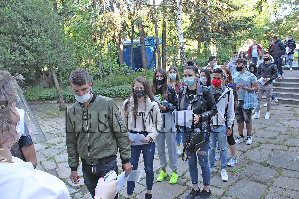 В хасковската ПГМЕТ „Стойчо и Кица Марчеви“ сутринта очакваха 110 зрелостници. При над 100 човека, за да няма струпване, беше отворен втори вход за влизане.