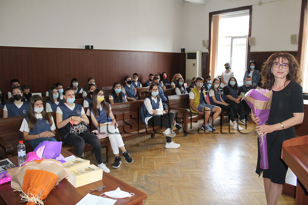 Днес ученици се запознаха с работата на съда, както и със задълженията на съдебните служители. Те получиха като подарък Конституцията на България.
