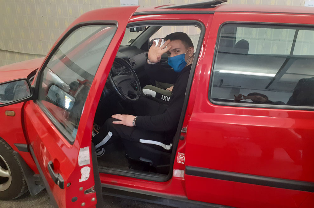 Демонстрират майсторско шофиране пред седмокласници в гимназията по транспорт