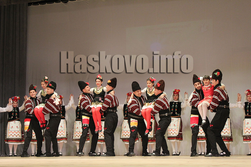 Фолклорният спектакъл „От миналото, през настоящето, към бъдещето“ изнесоха тази вечер танцьорите от хасковския ансамбъл „Златна Тракия“ с хореограф и главен художествен ръководител Златка Тимонова в читалище „Заря“.