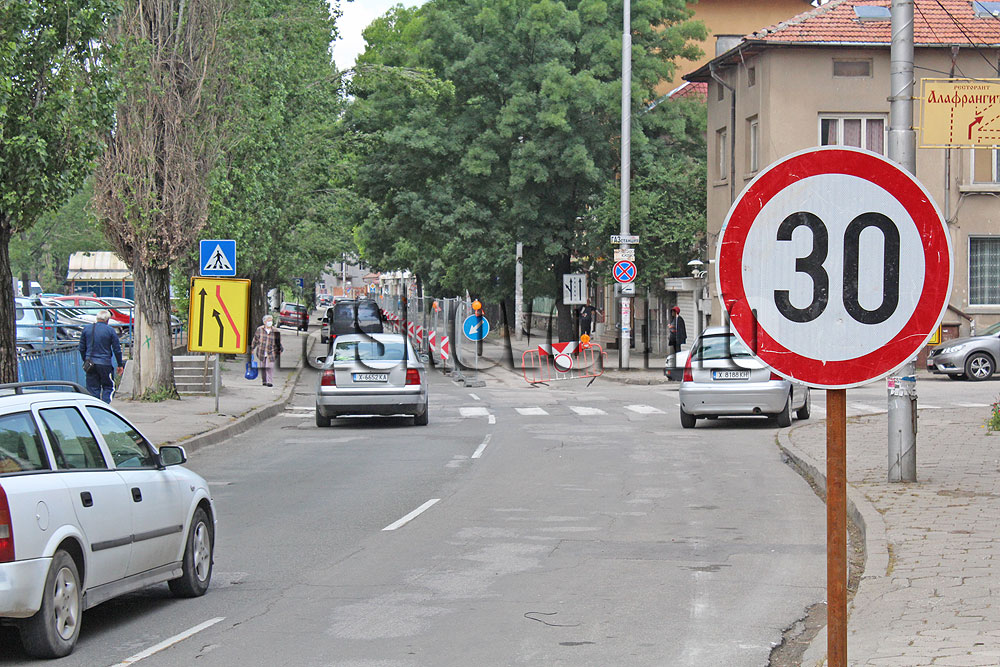 Едното платно на булеварда от пресечката с улица „Кавала“ покрай пазара в посока Градската градина е заградено. Там от сряда се очаква да започне подмяната на водопровода. На моменти се образуват колони от автомобили.
