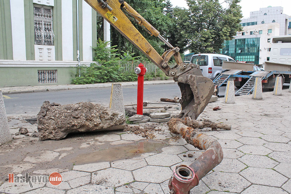 От ВиК подмениха пожарния хидрант до спортна зала „Дружба“ в Хасково. Старият беше изкривен и се изчакваше удобен момент за подмяната му.