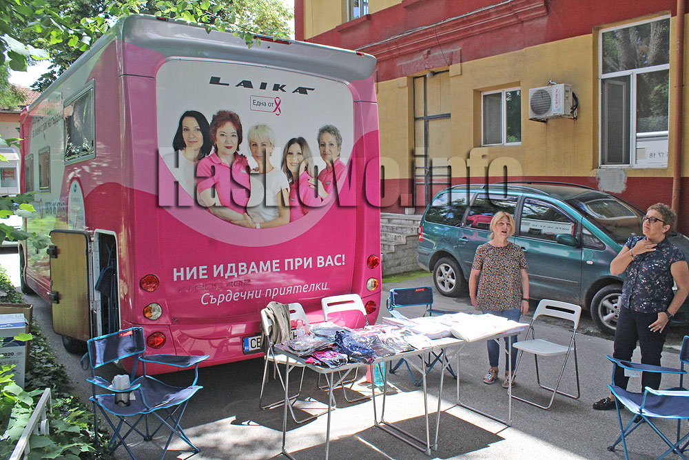 Както Haskovo.info писа, инициативата се провежда за пета година от Фондация „Нана Гладуиш – Една от 8“. Розовият кемпер на програмата „Сърдечни приятелки“ е паркиран зад болницата по онкология.