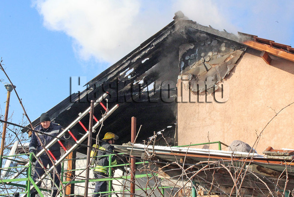 Опожарена е козирката на постройката, собственост на 40-годишен любимчанин. Изясняват се причините за пожара.