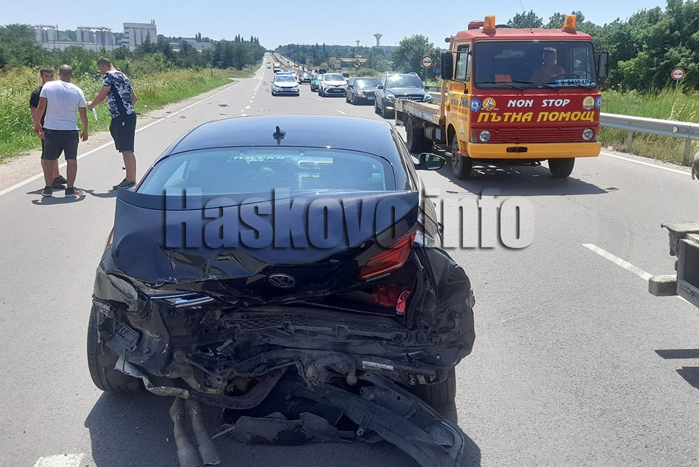 Катастрофа с три коли затрудни движението по пътя Хасково – Димитровград в ранния следобед. Инцидентът е станал малко след кръстовището за бирената фабрика в платното в посока Димитровград.