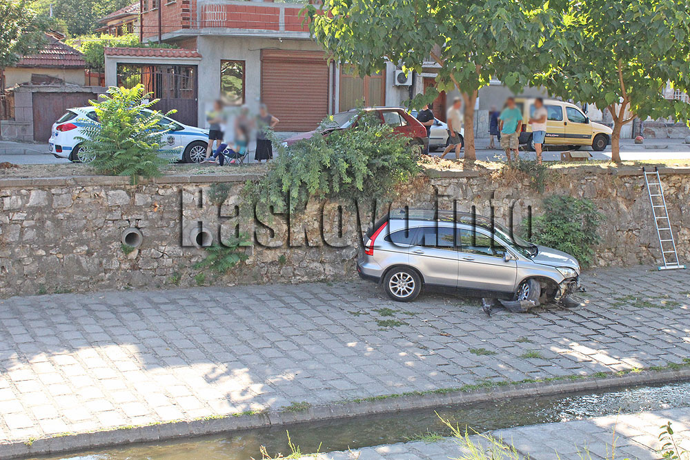 Автомобил Хонда падна в коритото на реката на булевард „България“ до Градската градина в Хасково. Инцидентът стана след 17 часа до моста срещу улица „19 февруари“.