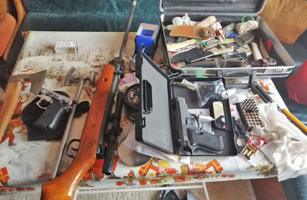 На 23 юли в къщата са намерени две ловни пушки, газов пистолет и 30 ловни патрона. Младият мъж заявил, че те са били собственост на баща му, който е починал през февруари тази година.